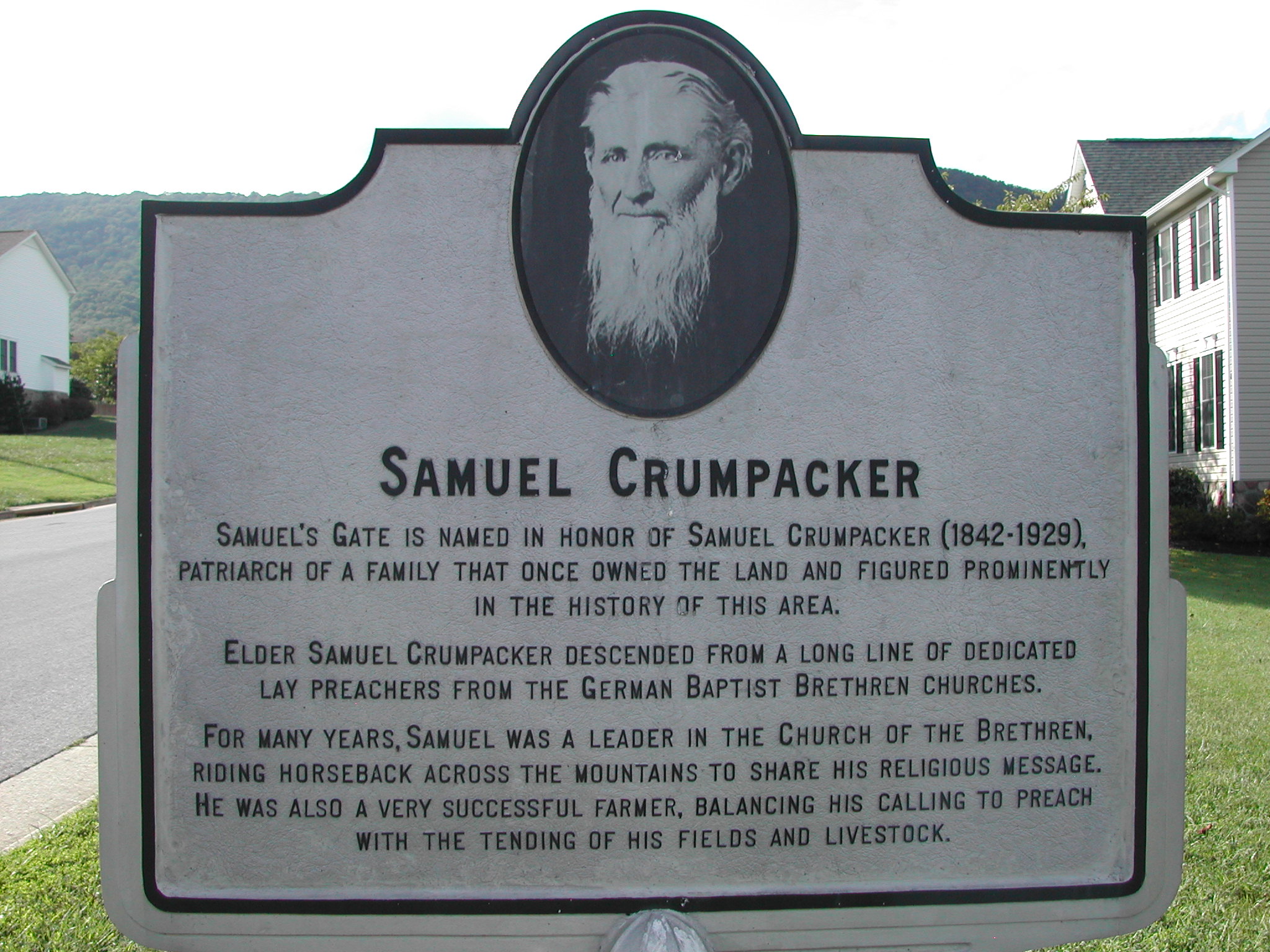 Samuel's Gate is named in honor of Samuel Crumpacker, patriarch of a family that once owned the land and figured prominently in the history of this area.